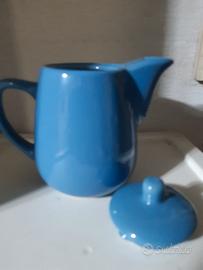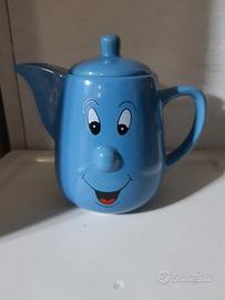 teiera azzurra con coperchio, disegno faccia. nuova mai utilizzata