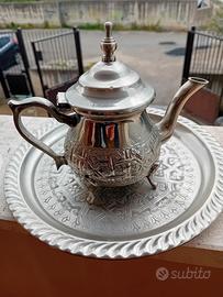 Teiera orientale con vassoio in antimonio
