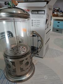 teiera in vetro e metallo