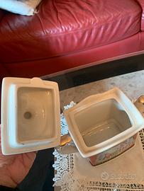 Bellissima teiera antica con raffigurazione di Romeo e Giulietta.