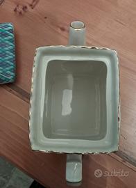Leggeri segni di usura nella parte interna del coperchio e nella parte inferiore della teiera, dove è presente la marca.