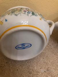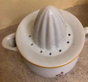 Teiera e Spremi agrumi in fine porcellana e dipinta. Spremi Agrumi H 12 cm X L 13 cm Teiera H 10 cm X L 17 cm