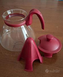 Teiera Simax Luna, un modello in vetro borosilicato resistente al calore, caratterizzato da un infusore e componenti in plastica di colore rosso.