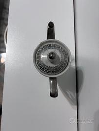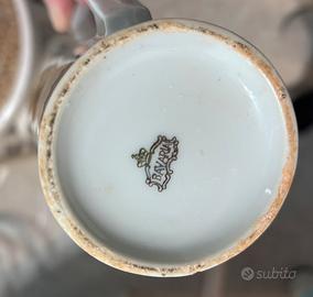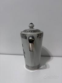 Teiera in porcellana con decoro floreale e bordo e dettagli argentati. Probabilmente anni 60/70. In buone condizioni. Perfetta come oggetto decorativo o da collezione. Dimensioni 16 cm.