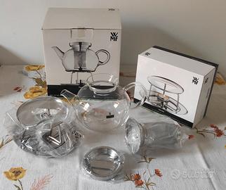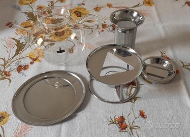 Bellissima teiera in vetro con infusore, coperchio e fornelletto in acciaio inossidabile