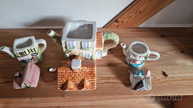 vendo tris di teiere in ceramica da collezione, rappresentano delle case/negozi. mantenute perfettamente