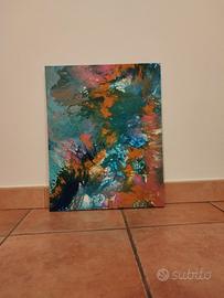Tela artistica stile contemporanea fatta a mano in acrilico con lucido. Dimensioni 40x50. Colori predominanti azzurro, blu, giallo e rosa.