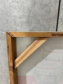 Stampa su tela effetto Vintage 115×90 cm, pronto per essere appeso senza ganci. Telaio in legno levigato e smussato dello spessore 3,5 cm, stampa continua sui bordi. Piccolo distacco di colore in basso a dx come da foto riportata