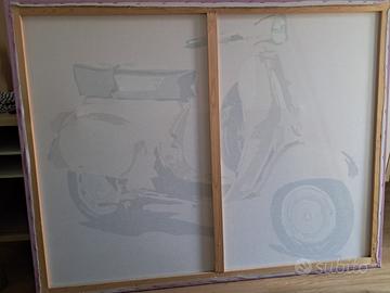 Stampa su tela raffigurante moto VESPA gialla. Dimensioni 106 cm. x 140 cm.