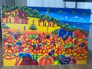 Tela originale della repubblica domenicana dipinta amano molto bella già con telaio pronta per essere appesa A detta per grandi ambienti