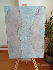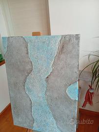 "Crystal River" é un fiume di luci e chiari che scorre in un letto di terra; terra che sembra non riuscire a contenere la forza delle acque. La luce é la vera anima della tela: al variare del punto di osservazione cambiano i riflessi di luci. Ideale per ambienti con pareti scure e stili particolari. Per chi vuole un elemento di arredo unico, per chi ricerca un dipinto dinamico di luci , "Crystal River" é ciò che cercavi... Misure 50x70cm.