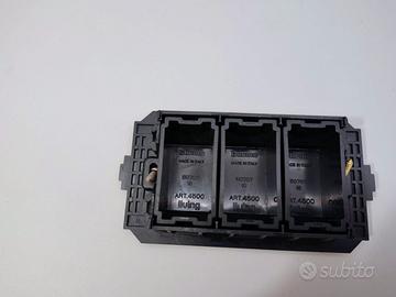 Supporto a 3 moduli (ART 4703) con tre tappi copriforo (ART 4500) appartenenti alla storica serie civile Living Classic.