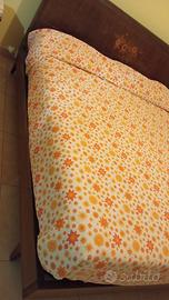 Vendo telaio letto matrimoniale in legno, colore noce, stile classico, con testiera decorata con motivo floreale in stile intarsio.