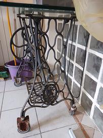 telaio originale macchina per cucire singer anni '60 con sopra piano di cristallo e ruote per movimento.