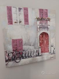 Vendo quattro tele dipinte a mano shabby chic in ottime condizioni.. misure: 80x80. 60x60 e i due più piccoli 40x40 . il prezzo 100euro.