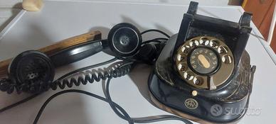 Telefono perfetto integro e funzionante in bachilite nero con manico in ottone