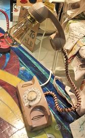 Lampada fatta artigianalmente da un telefono mod Starlight color beige. Lavoro di qualità: filo avvolto su tubo di rame, portalampada di metallo dorato con anima in ceramica, lampada a led. Oggetto unico.