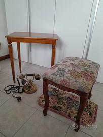 Tavolino : altezza 55 cm lunghezza 52 cm larghezza 35 cm € 40 Pouf con fodera : lunghezza 49 cm larghezza 34 cm € 110 Telefono ☎️ € 100 Zona Trento