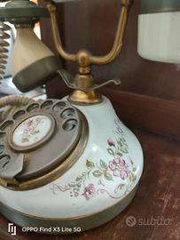 Telefono Telcer vintage da antiquariato, di fine anni 70, color Avorio con disegni floreali DIPINTI A MANO .