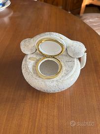 Splendido telefono da appoggio in pregiata ceramica bianca, decorato con un raffinato motivo floreale e preziosi dettagli in oro zecchino. Un oggetto d'arredo unico, perfetto per chi ama lo stile Shabby Chic o vuole fare un regalo indimenticabile e romantico.