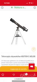 Un telescopio galileiano con un'ottica di qualità che si presta molto bene a prime osservazioni astronomiche, soprattutto da parte di ragazzi, e può anche essere usato per osservazioni terrestri. Telescopio rifrattore acromatico con treppiede regolabile in altezza dotato di: diametro 60mm, focale 700mm (f/11,6), montatura altazimutale AZ2, due oculari diam. 31,8mm H20mm (35X) e H12,5mm (56X), un oculare immagine raddrizzata 1.5X, cercatore 5X24, Barlow 2x, diagonale a specchio 31,8mm.