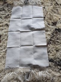 Set Teli da bagno/Asciugamani di Lino damascato con frange e ricamo, nuovi mai usati, provenienti da un corredo anni '50. 10 euro ciascuno. Set da 6 pezzi 50 euro