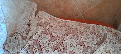 Vendo in unico lotto 4 splendidi teli di tende elegantissime in pizzo, identico ricamo, misure e prezzi diversi, colore panna, tutti orlati e già predisposti per allaccio con ganci.