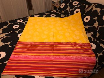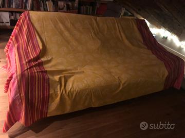 Telo arredo giallo/righe rosse. Dimensioni circa 250x280 cm. Perfetto come copriletto matrimoniale o copridivano. Usato pari al nuovo.