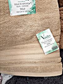 Asciugamani Telo Bagno misura 100x150 cm , realizzati in 100% cotone , colore Celeste e Beige