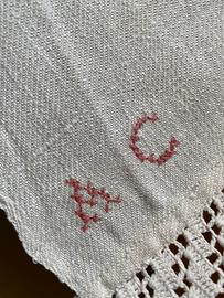 Telo da bagno in cotone grezzo con frangia fatta all’uncinetto con ricamo Buongiorno da un lato InizialiA C Largo centimetri 62 alto centimetri 110 con frangia