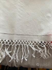Telo da bagno in puro cotone ricamato al centro con nome e frangia da entrambi i lati adatto per arredare o tovaglietta per piccolo tavolo largo centimetri 75 alto centimetri 95 esclusa Francia