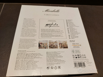 Vendo telo decorativo (tablo' sateen) della Mirabello Carrara nuovo in confezione originale come da foto. Design esclusivo di Ugo Nespolo. 145×145 cm. Sia per la tavola che per l'arredo. Fatto in Italia.