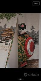 Telo giapponese utilizzato per le porte in cotone stampato misure 148 x 84 con apertura centrale e passante sopra - venduto senza palo