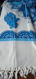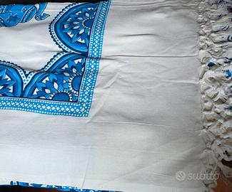 Batik-Telo Mare-Copritutto, 100% cotone, misura 210x240 più frange. Disegni azzurri su sfondo panna (come da foto) No spedizione: consegna a mano Saronno.