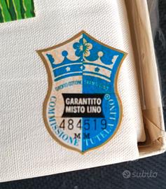Telo in tessuto con ordito cotone e trama in lino, marca Zucchi. Tessuto di altissima qualità certificato. Dimensioni effettive telo 240/290 cm. Perfetto per biancheria e lenzuola. In perfette condizioni. Nella sua confezione originale.