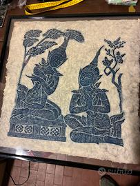Temple rubbing thalandese, penso su carta di riso, valuto offerte, non conosco l’epoca di provenienza, bella cornice con vetro double face