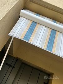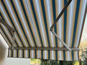 Vendo tenda a braccio avvolgibile larghezza circa 215 cm . Telo nuovo sostituito estate scorsa dopo grandinata. Si vende gia’ smontata.