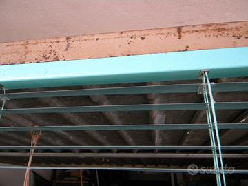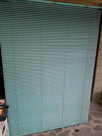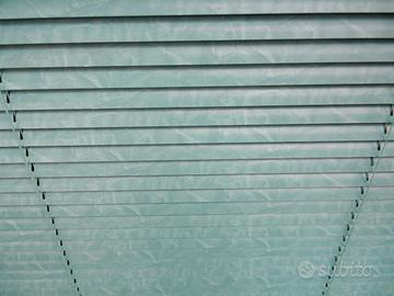 Tenda alla veneziana in alluminio decorato verde acquamarina vendo per cessato negozio: 80Lx200H a 19 euro dispon 1pz. 140Lx220H 1pz a 30 euro. Le stecche sono larghe 25mm e spesse 1mm