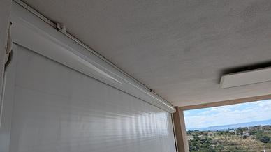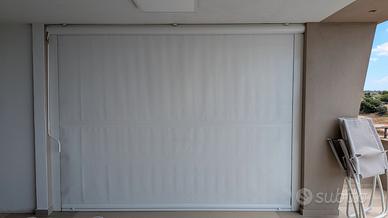 Tenda bianca per esterno antivento e oscurante, compresa di accessori per scorrimento verticale ( Binari ) misure altezza 2,55 fino a 2,60, larghezza 1,90. ritiro a mano comune di Caltagirone (CT)