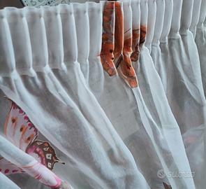 tendone (utlizzato per cameretta) bianco con farfalle arancioni, fucsia e tortora.