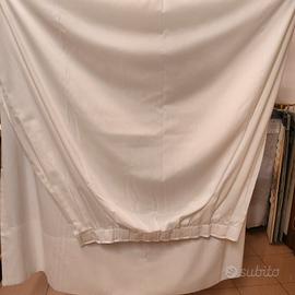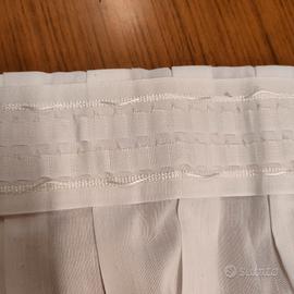 Tenda bianca confezionata, in tessuto di poliestere, misura MT 1,65 di larghezza finita e MT 2,68 di altezza. Il tessuto è largo MT.3,30. Finita sul fondo con balza doppia e punto a giorno, le finiture laterali con piega e sotto punto fatto a mano. Tenda usata ma in buono stato. Ritiro a domicilio.