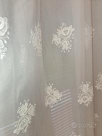 Tenda rifinita anche dietro ,in organza L4.mt con mantovana e discesa ricavata da abito da sposa in pizzo Francese h3mt.