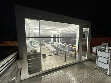 Vendo tenda Bioclimatica con tetto apribile completa di telecomando e led…. Misura 5x4 con 2 porte e tende cristal laterali… vero affare costa 13000€