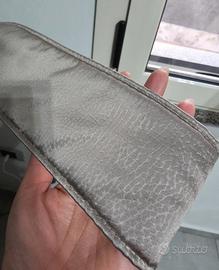 Tenda Calligaris in seta e lino, modello "sasso", completa di bastone in acciaio. Il bastone misura 200 cm, la tenda 290 cm in altezza.