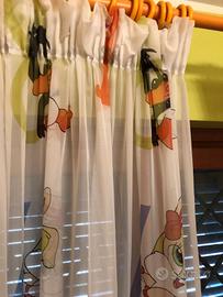 Tenda camera bambini per porta finestra 2 ante 2 teli da cm 87x230 Bianca con disegni Baby Looney Tunes Cucita da una sarta Bastone tenda con anelli arancione con terminali a forma di aereo Lampadario abbinato a forma di aereo MAI USATO