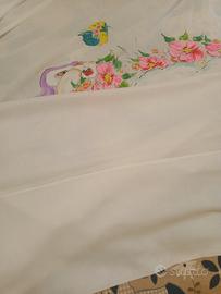 Tenda da sole da interno, ideale per cameretta bambino bambina, cotone e poliestere, motivo dipinto a mano con coniglio ed uccellino , già pronta per il montaggio con fettuccia regolabile, ganci e punto a giorno, misure circa 250 cm di altezza e 235 cm di lunghezza, mai autorizzata vendo per errato acquisto.