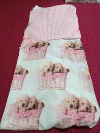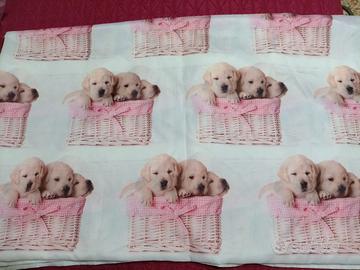 Tenda con mantovana. fatta a. mano. disegno di cuccioli Labrador. misure larghezza 1,70 per altezza 2,25.
