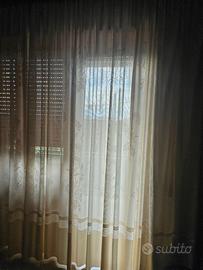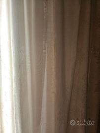 Due teli tende colore avorio misure: altezza cm 270 e larghezza cm 240 (ciascun telo) con arriccia tende per bastoni a filo scorrevoli come da foto. Zona Marconi