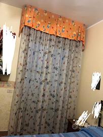 vendo tenda e lampadario x stanzetta così come da foto .Le misure della tenda sono 2,93 cm di altezza e 4,16 di larghezza euro 50