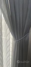 Tenda per soggiorno /camera da letto cucita su misura colore grigio chiaro bianco con binario /bastone in ferro ,di una ottima qualità . Vendo tutto insieme per 80 euro Misura così come in foto appesa con il riccio e 270 lunghezza per 180 larghezza